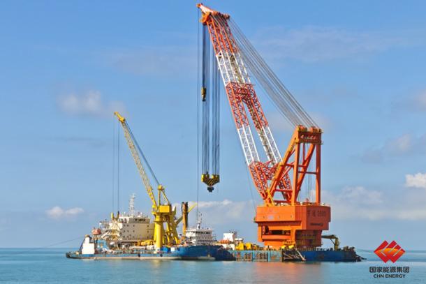 图为龙源电力海南东方海上风电项目单桩基础施工